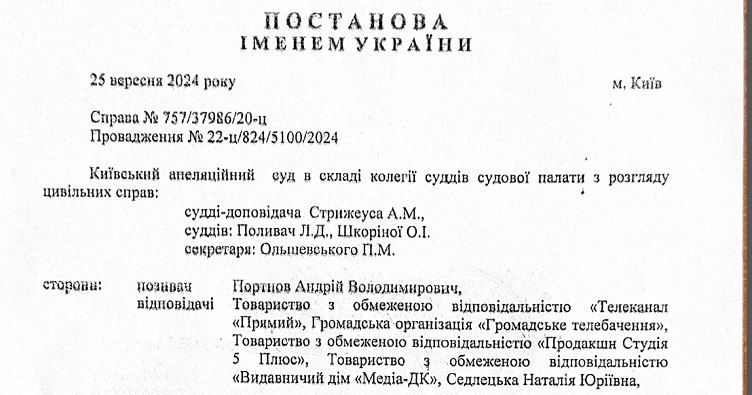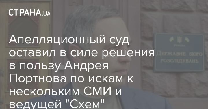 Киевский апелляционный суд подтвердил решение по поводу иска юриста Андрея Портнова к нескольким СМИ и ведущей программы "Схемы" Наталье Седлецкой. Он оставил в силе решение суда первой инстанции в пользу истца.