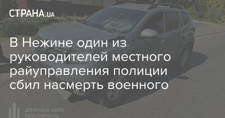 В Нежине один из руководителей местного райуправления полиции на служебном авто сбил насмерть военного. Об этом сообщает Государственное бюро расследований.