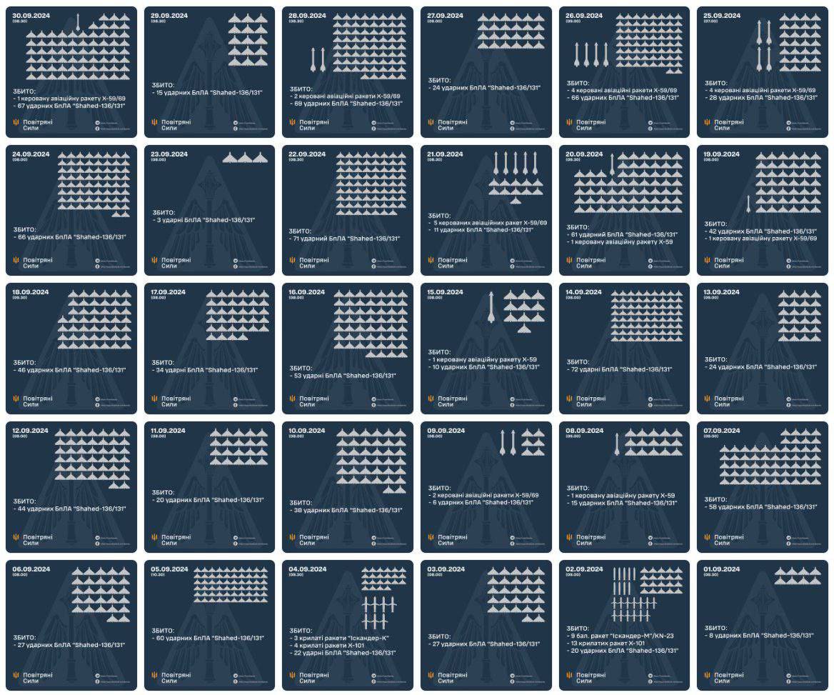 Между тем сегодня АрмияInform со ссылкой на данные Воздушных сил ВСУ сообщала, что сентябрь стал первым месяцем за всю войну, когда россияне ежедневно атаковали территорию Украины "Шахедами".