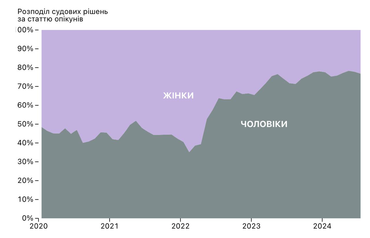 За 2023 и неполный 2024 года было вынесено 13 тыс. судебных решений, в 80% случаев уход возлагался на мужчин.