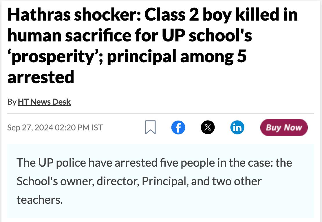 Владелец школы, который, как говорят, верит в "тантрические" ритуалы, попросил своего сына, директора школы, принести в жертву ребёнка ради "процветания" школы и его семьи.