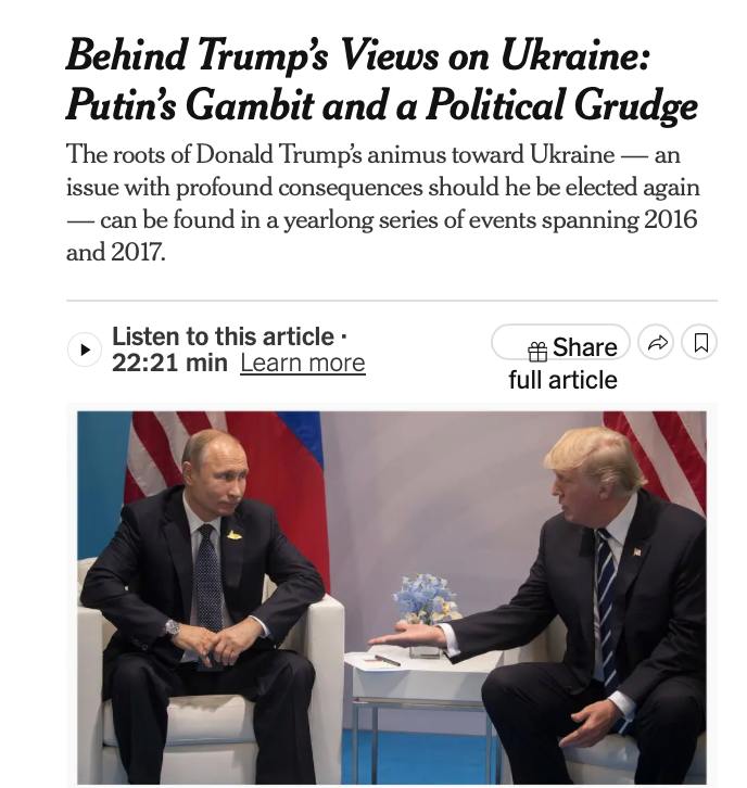 Трамп заявил Путину, что рассматривает возможность поставок оружия Украине и спросил: "Что вы думаете?" Путин в ответ заявил, что это было бы ошибкой, и какую бы помощь США ни предоставили украинцам, "они попросят ещё". Американский президент не стал возражать, сообщает NYT со ссылкой на трех чиновников.