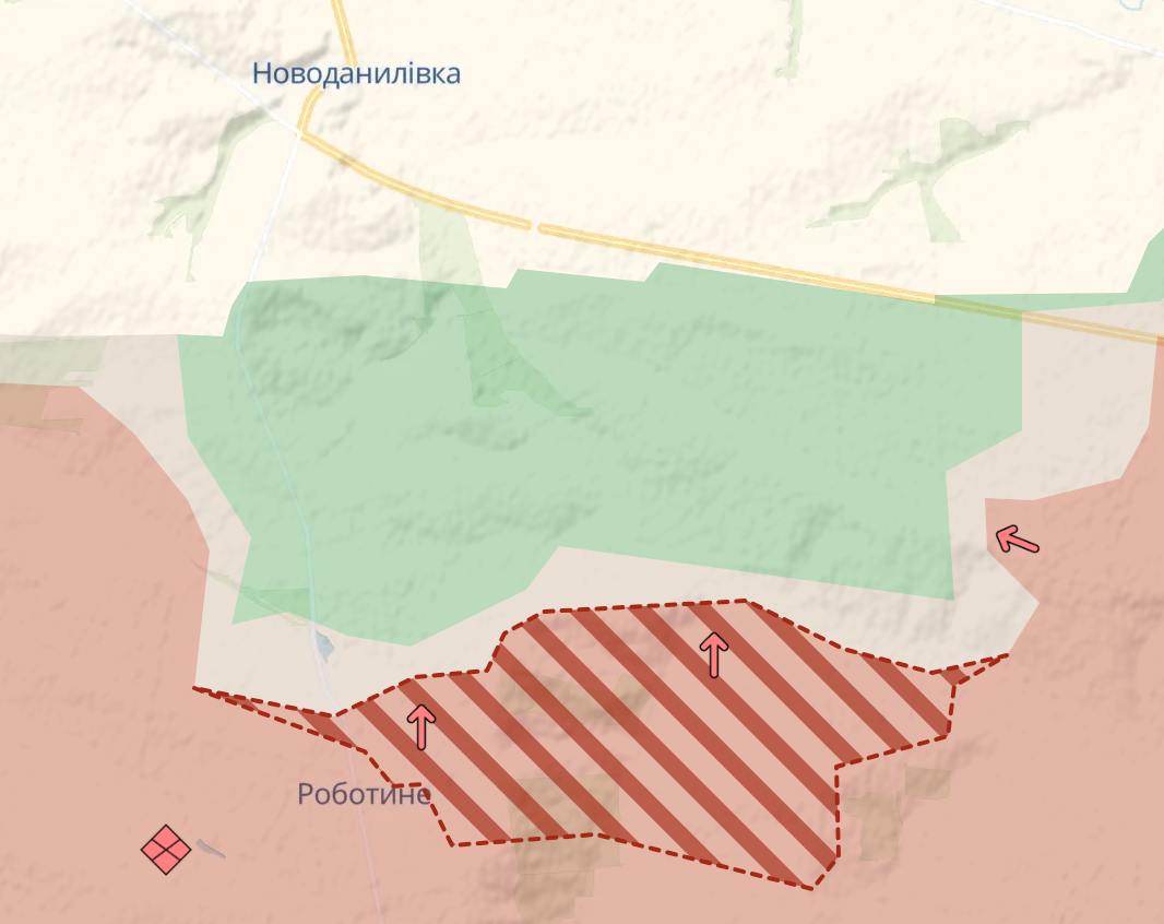 На Работинском у россиян существенное продвижение широким фронтом в сторону Новоданиловки, где летом 2023 году контрнаступали ВСУ.