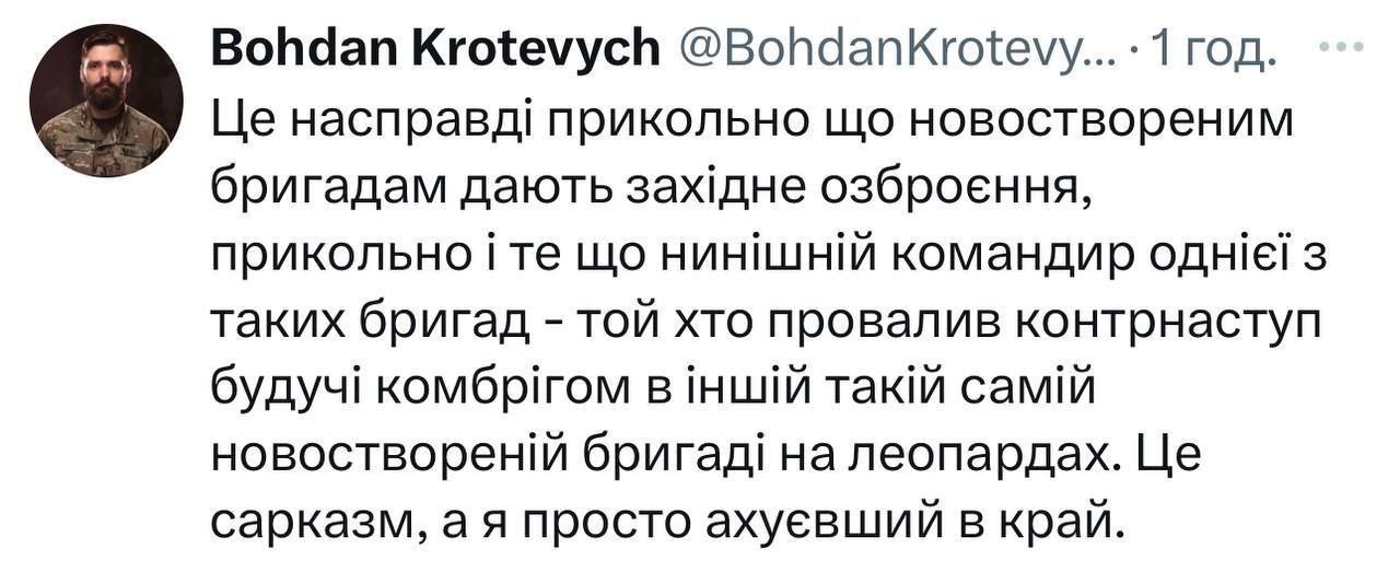 По его словам, в 2023-м провал случился также с новосозданной бригадой «на «Леопардах». Другие подробности не приводятся.