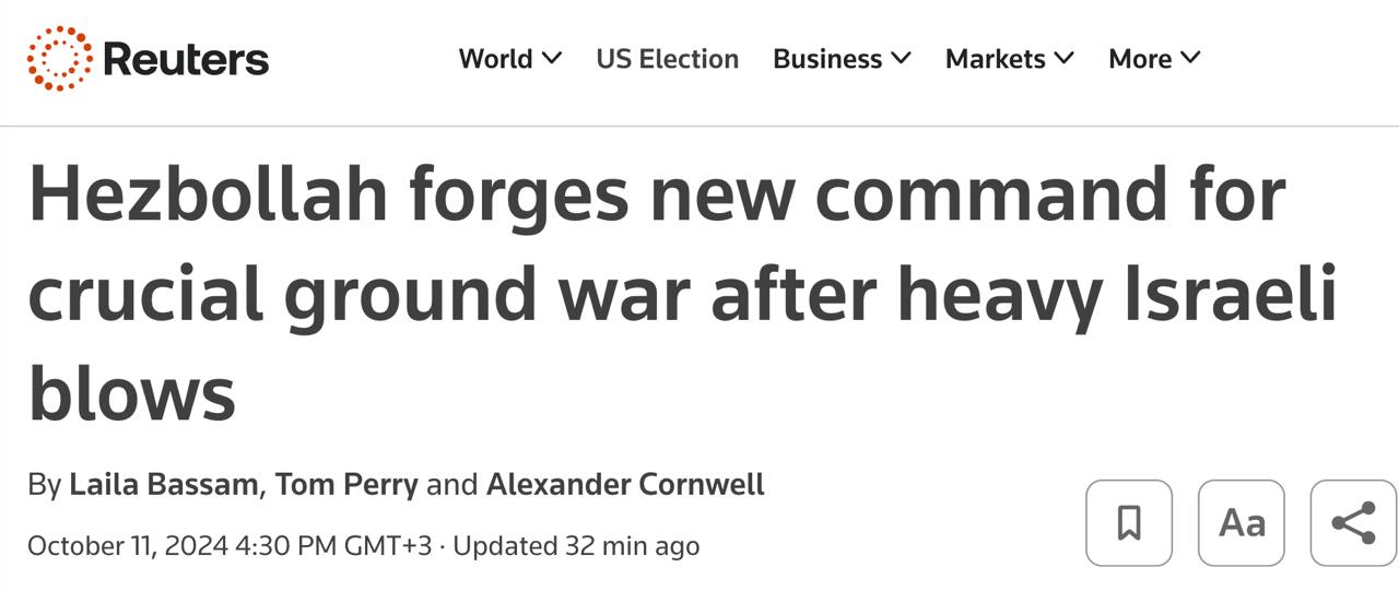 Напомним, что Израиль объявил о начале сухопутной операции на юге Ливана в прошлый понедельник. Но до сих пор ни одна из сторон не сообщала о серьёзном продвижении израильских войск вглубь территории Ливана. Появились лишь фото и видео с израильскими военными в ряде приграничных населенных пунктов, в частности, в Марун-аль-Расе в паре километров от границы.