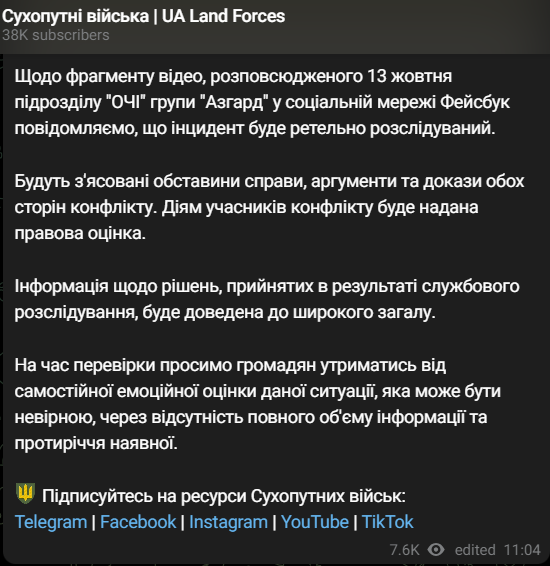 Сухопутные войска уже отреагировали и заявили, что будет проведено расследование. Никаких уточнений по личности "советника Павлюка" в официальном комментарии не прозвучало.