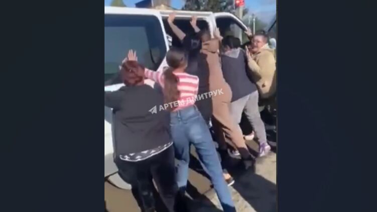 Женщины атаковали бус военкомов. Скриншот видео