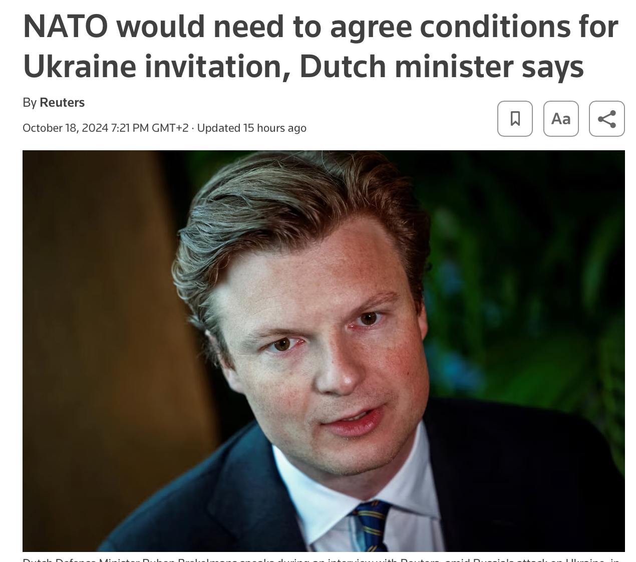 Брекельманс сказал, что "чёткие критерии" вступления Украины ещё нужно будет согласовать внутри НАТО.