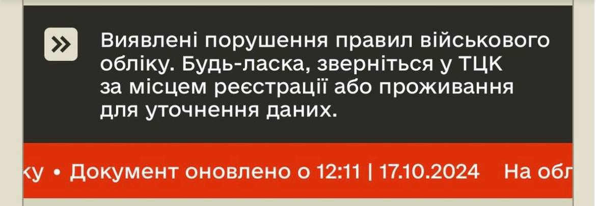 "Если честно, то это самая большая афера ТЦК, которую только видел, конечно, после МММ, - пишет адвокат, - Отправка сообщения в мобильное приложение "Резерв+" об обнаружении нарушения правил военного учёта, для устранения которых необходимо обратиться в ТЦК, отображается как в мобильном приложении, которое мужчина показывает работникам ТЦК или полицейским, так и в Едином государственном реестре призывников, военнообязанных и резервистов и в базе "Оберег", по которой работники ТЦК в общественных местах и на блокпостах проверяют состояние военно-учетных данных военнообязанных. Тот факт, что мужчина добросовестно и своевременно уточнил свои персональные данные, уже не будет иметь значения. При проверке военно-учетного документа и сверки с сведениями в Едином государственном реестре военнообязанных, работники ТЦК и полицейские будут видеть последнюю запись о том, что у мужчины выявлены нарушения правил военного учета, для устранения которых было необходимо обратиться в ТЦК, но он не обратился. Следующий шаг в этой афере – задержание и принудительное доставление мужчины в ТЦК".