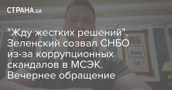 "Жду жестких решений". Зеленский созвал СНБО из-за коррупционных скандалов в МСЭК. Вечернее обращение