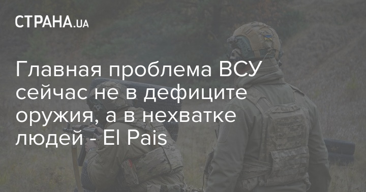 Главная проблема ВСУ сейчас заключается не в дефиците оружия, а в нехватке людей. Об этом сообщил испанской газете El Pais анонимный представитель Минобороны.