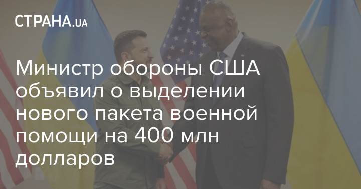 Министр обороны США Ллойд Остин на встрече с президентом Владимиром Зеленским объявил о выделении нового пакета военной помощи на 400 миллионов долларов. В него войдут боеприпасы, военная техника и вооружение.