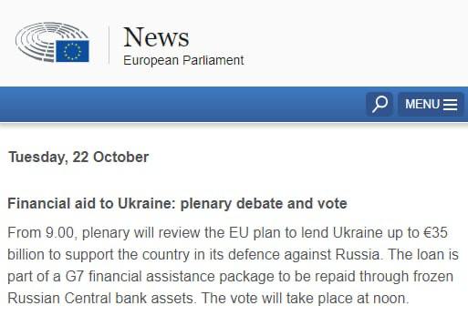 Ранее Европарламент утвердил предложение Еврокомиссии о создании Механизма кредитного сотрудничества с Украиной, который дает возможность Киеву обслуживать и погашать кредит стран G7 в 45 млрд евро за счет доходов от замороженных российских активов.
