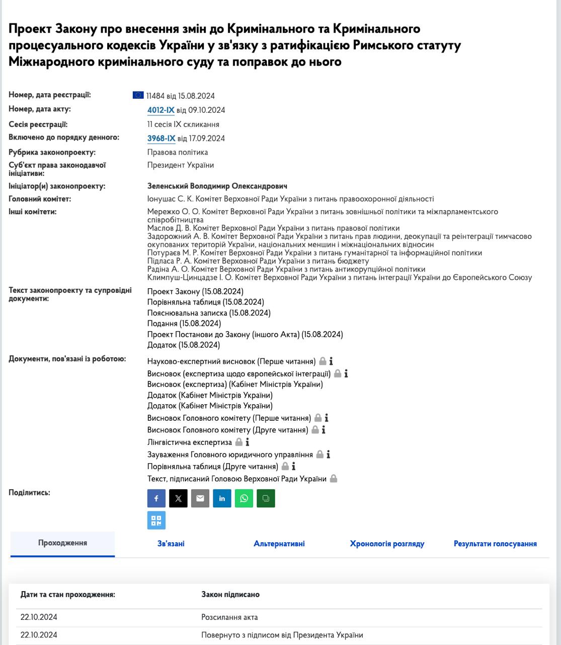 Зеленский подписал закон, согласующий Уголовный кодекс Украины с нормами Римского статута