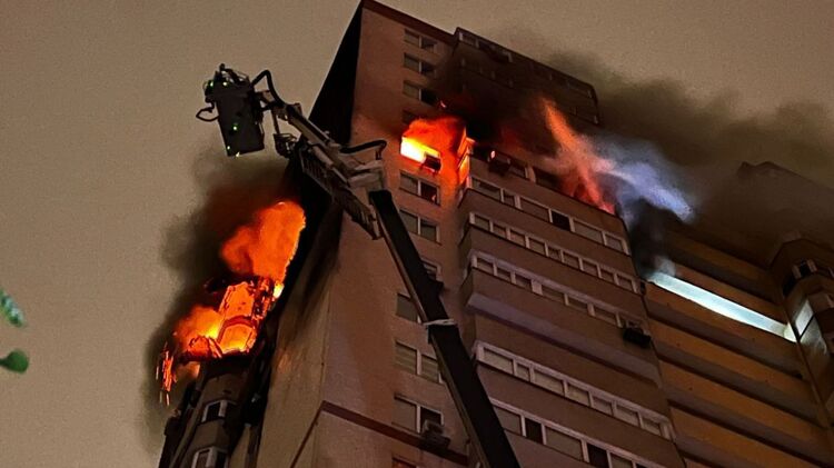 Напомним, сегодня вечером в Киеве прогремели взрывы. В результате попадания дрона в 25-этажный жилой дом начался пожар. Проводится эвакуация жильцов.