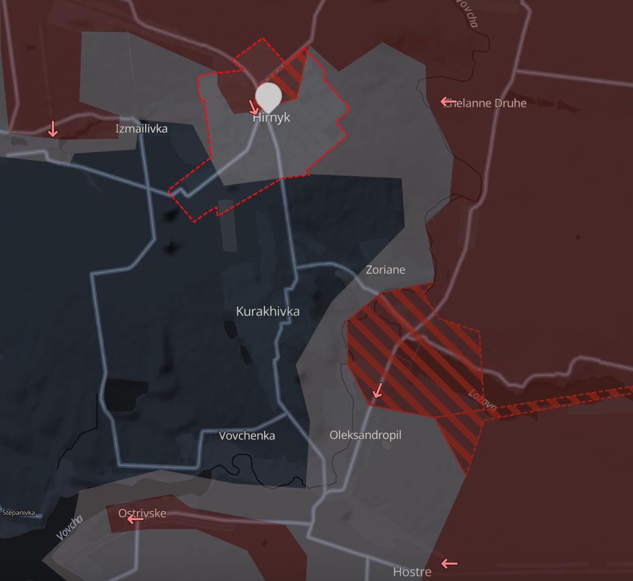 Согласно карте военного паблика Deep State, Горняк захвачен наполовину, остальная часть в "серой зоне". При этом паблик подтверждает данные о продвижении РФ в районе Александрополя южнее Кураховки (украинские военные сообщали, что весь поселок потерян).