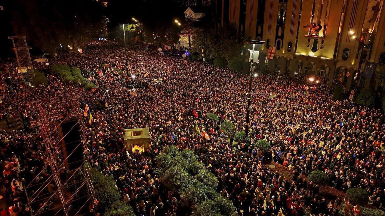 Акция протеста в Тбилиси завершилась исполнением гимнов ЕС и Грузии, после чго протестующие начали расходиться.