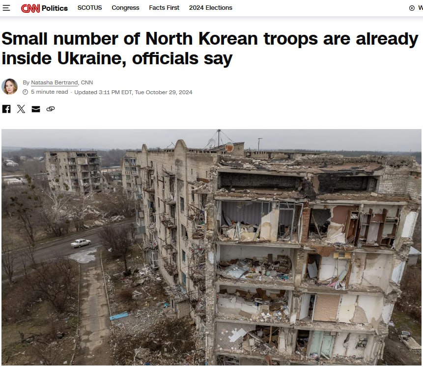 В то же время один из американских чиновников отметил, что США пока не могут подтвердить сообщение о том, что войска КНДР уже находятся в Украине.