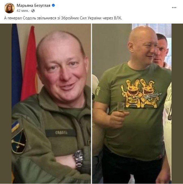 "А генерал Содоль уволился из Вооруженных сил Украины через ВВК", - сказано в ее публикации.