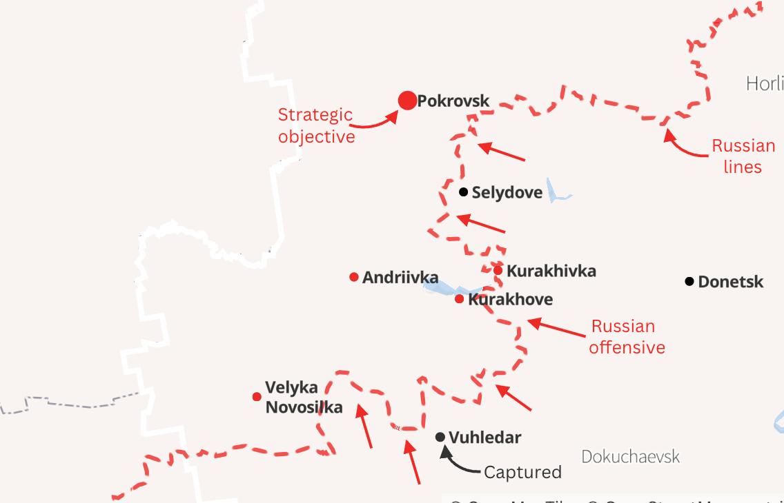 Он говорит, что захват Селидово стал крупнейшим приобретением РФ с момента падения Авдеевки. По мнению Кастехельми, Россия создаёт условия для захвата Покровска.