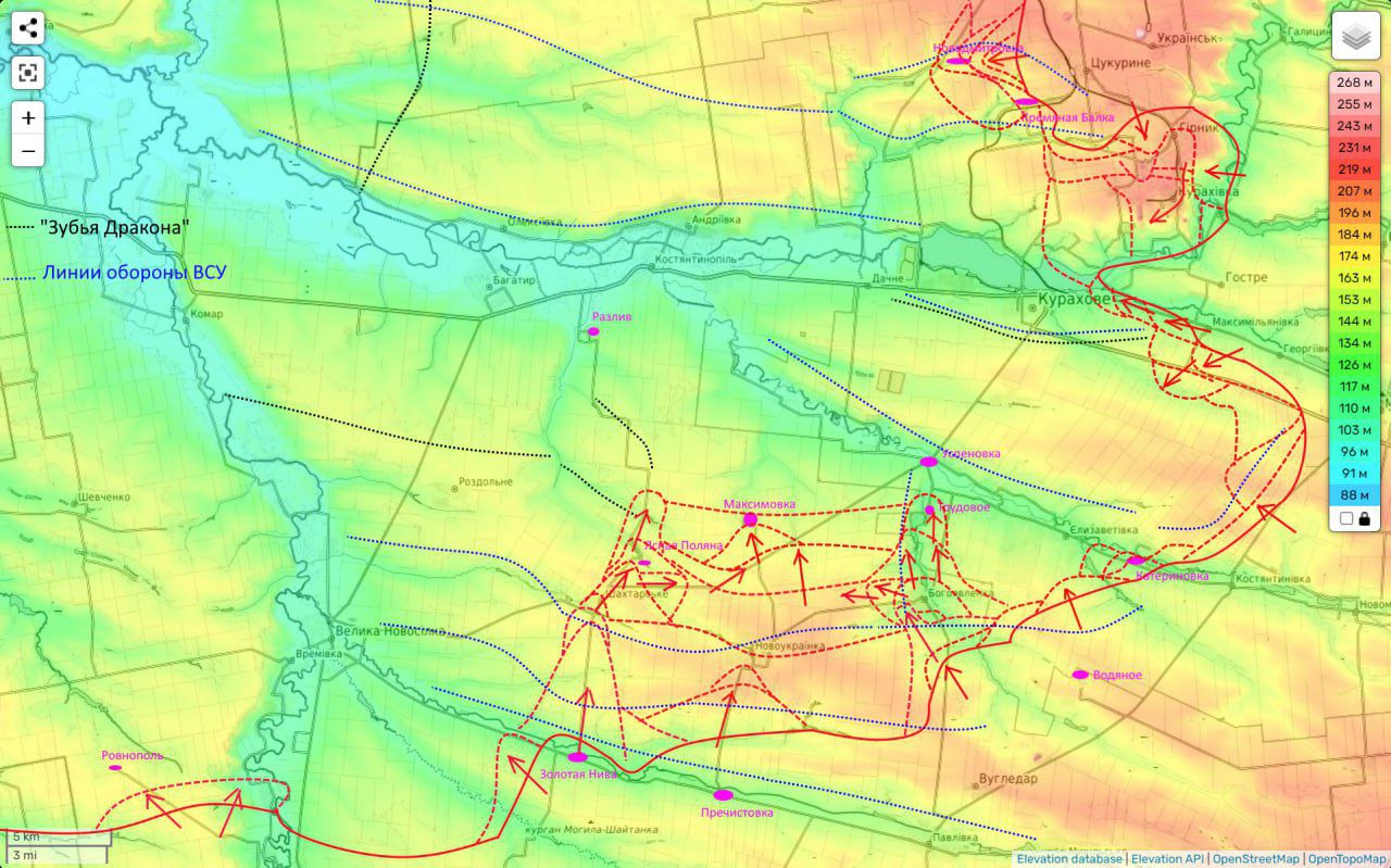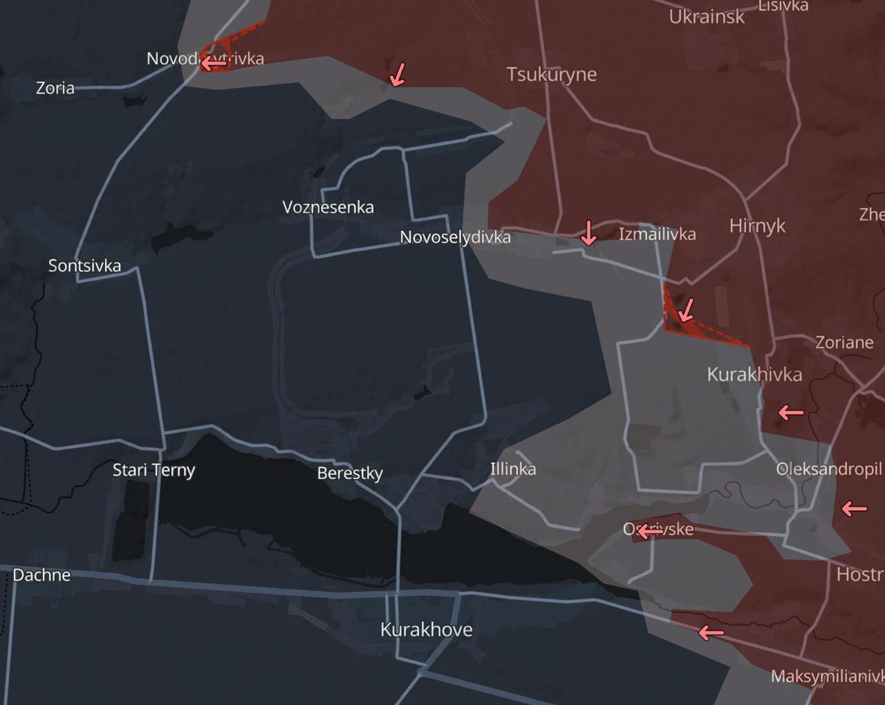 Кроме того, согласно карте военного паблика Deep State, российские войска снова продвинулись к юго-западу от Курахово.