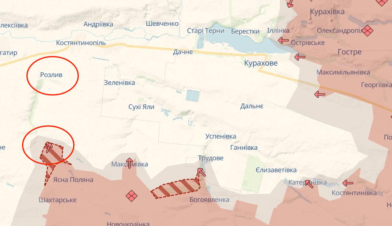 Армия РФ существенно продвинулась со стороны Ясной Поляны к селу Разлив, что возле трассы, ведущей с запада на Курахово в Донецкой области.
