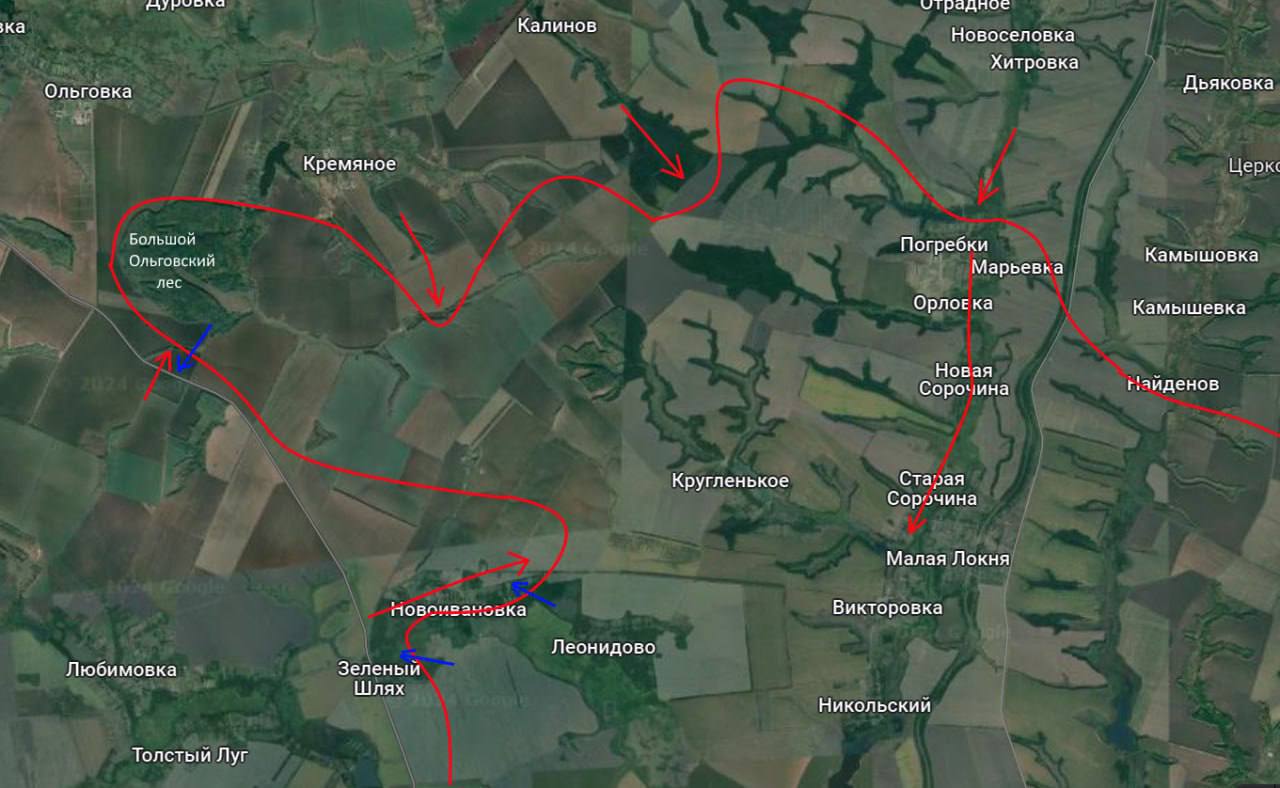 Российские паблики заявляют, что армия РФ смогла существенно продвинуться от Погребков к Малой Локне.