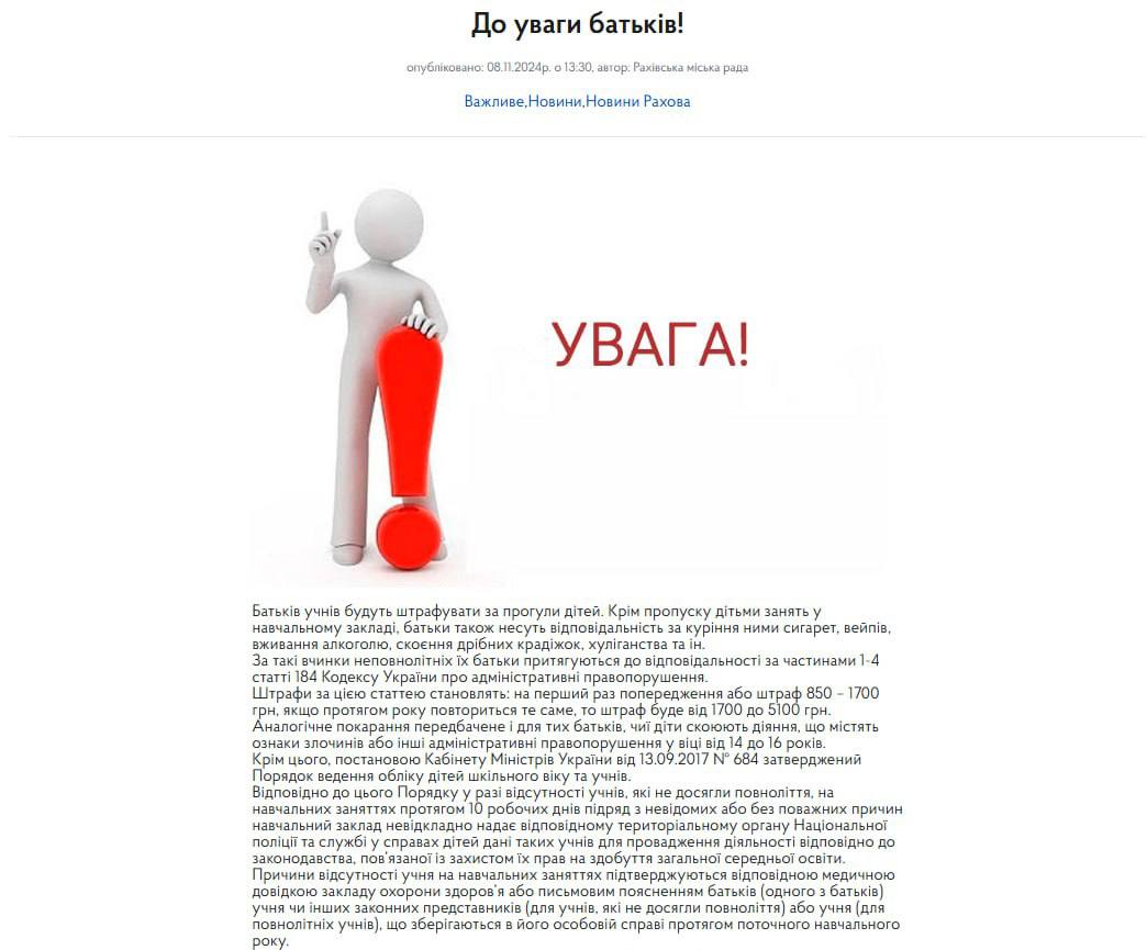 За такие поступки несовершеннолетних родители будут привлекаться к ответственности по частям 1-4 статьи 184 Кодекса Украины об административных правонарушениях.