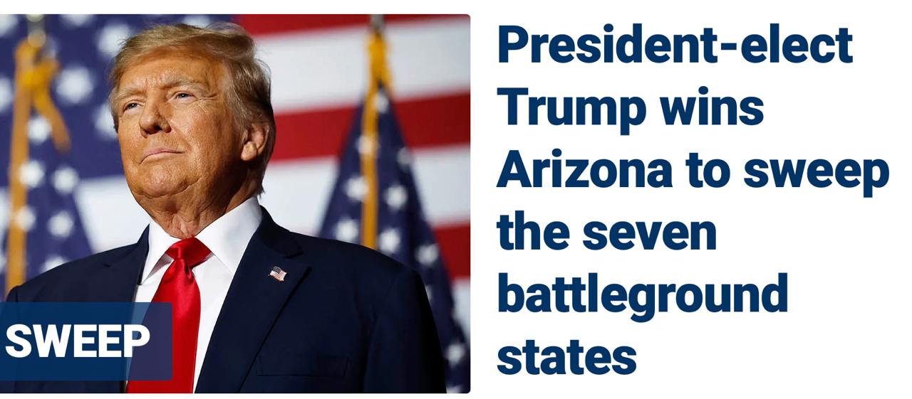 В США завершили подсчет голосов на выборах президента. Дональд Трамп победил Харрис в Аризоне - последнем из семи колеблющихся штатов, от которых зависел исход выборов. В итоге он получил еще 11 голосов выборщиков.