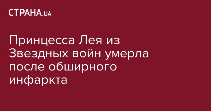 Сегодня, 27 декабря, в возрасте 60 лет умерла актриса и сценарист Кэрри Фишер, известная как исполнительница роли принцессы Леи в оригинальной трилогии "Звездные войны". Об этом сообщает People Magazine