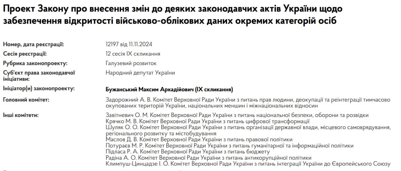 Народный депутат от фракции "Слуга народа" Максим Бужанский предложил открыть данные военнообязанных активистов.