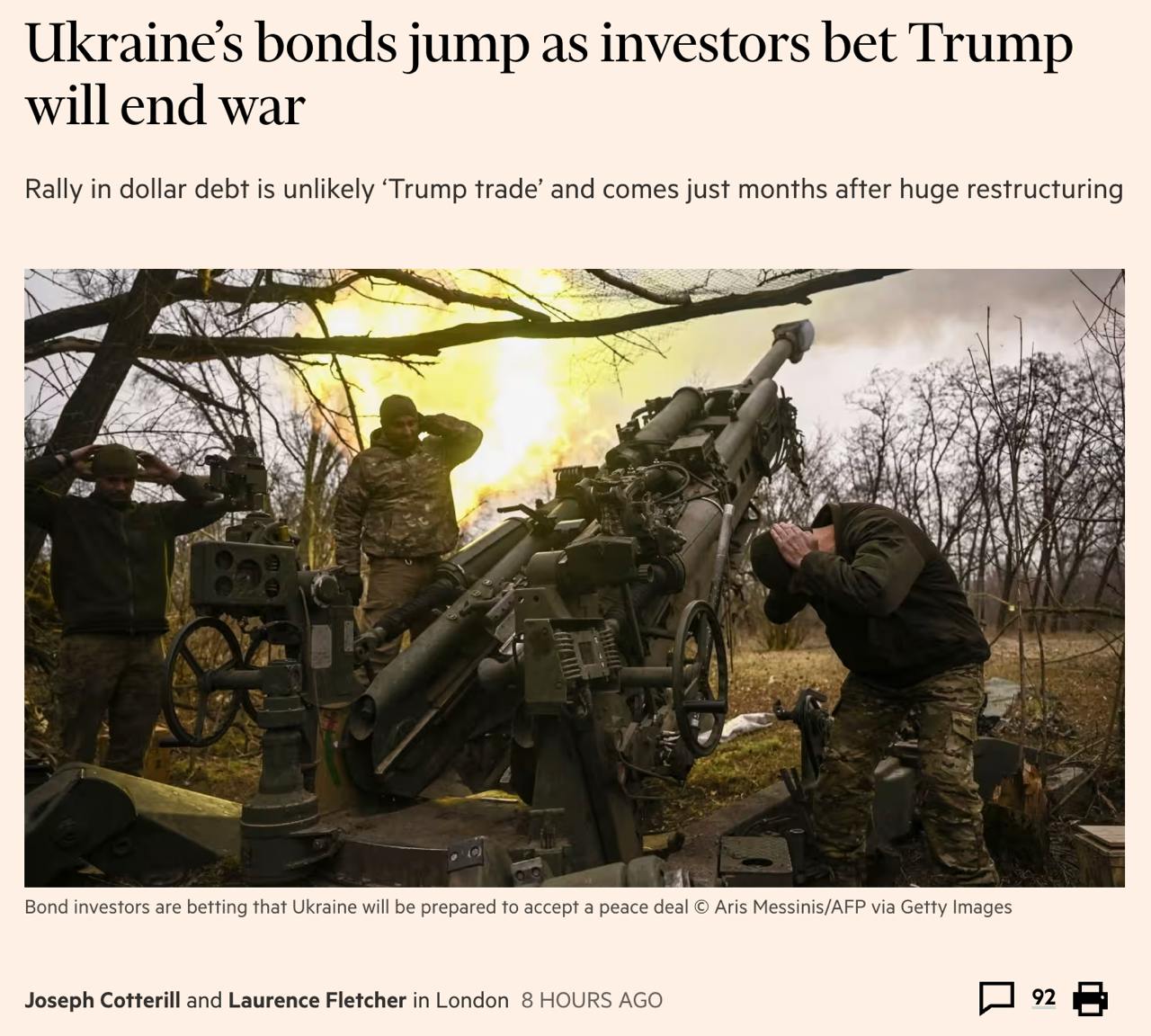 Долларовые облигации Украины выросли на 12% на фоне ожиданий инвесторов, что Трамп закончит войну - FT