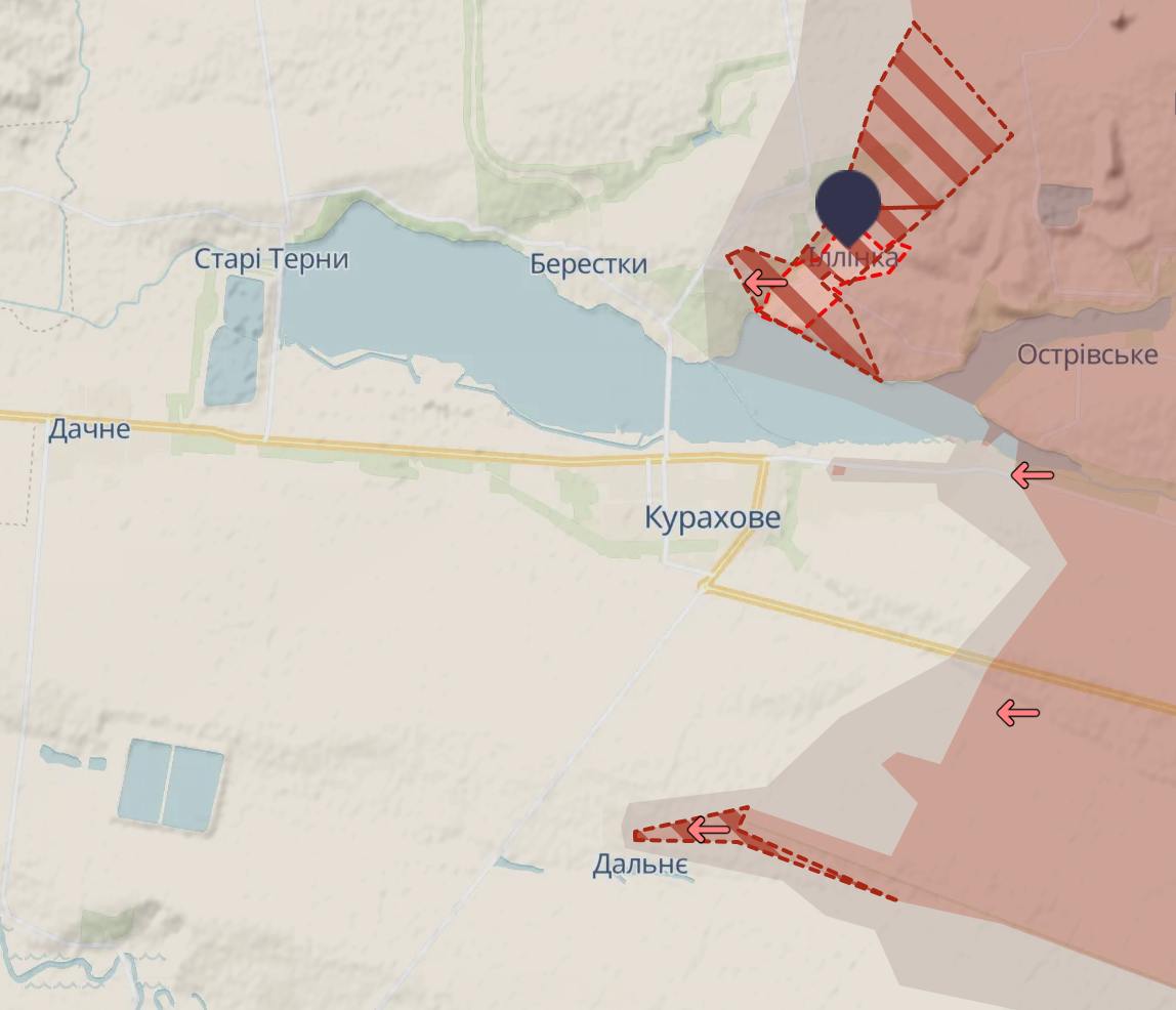 При этом к югу от Курахово россияне существенно продвинулись в районе Дальнего и от Максимовки, создав угрозу окружения "кармана" по речке Сухие Ялы. До появления "котла" там осталось менее шести километров.