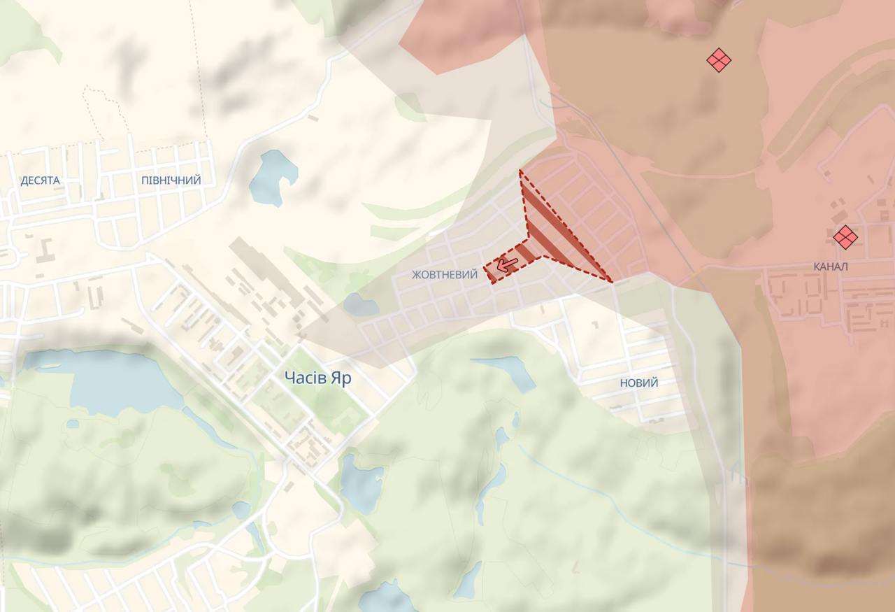 Карта Deep State подтверждает, что РФ продвинулась в микрорайоне Жовтневый со стороны канала и сумела закрепиться. А серая зона достигает почти центра города. Украинские военные также подтверждают, что россиянам удалось дойти до центра города и сейчас бои разворачиваются в районе огнеупорного завода, потеря которого может привести к падению обороны всего города.