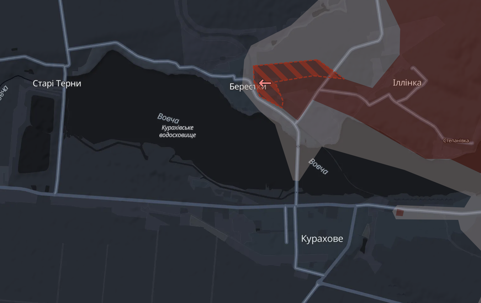 К северу от Курахово россияне продвинулись в деревне Берестки и уже в трех километрах от Старых Тернов, захват которых будет означать угрозу блокирования главной дороги в Курахово с запада.