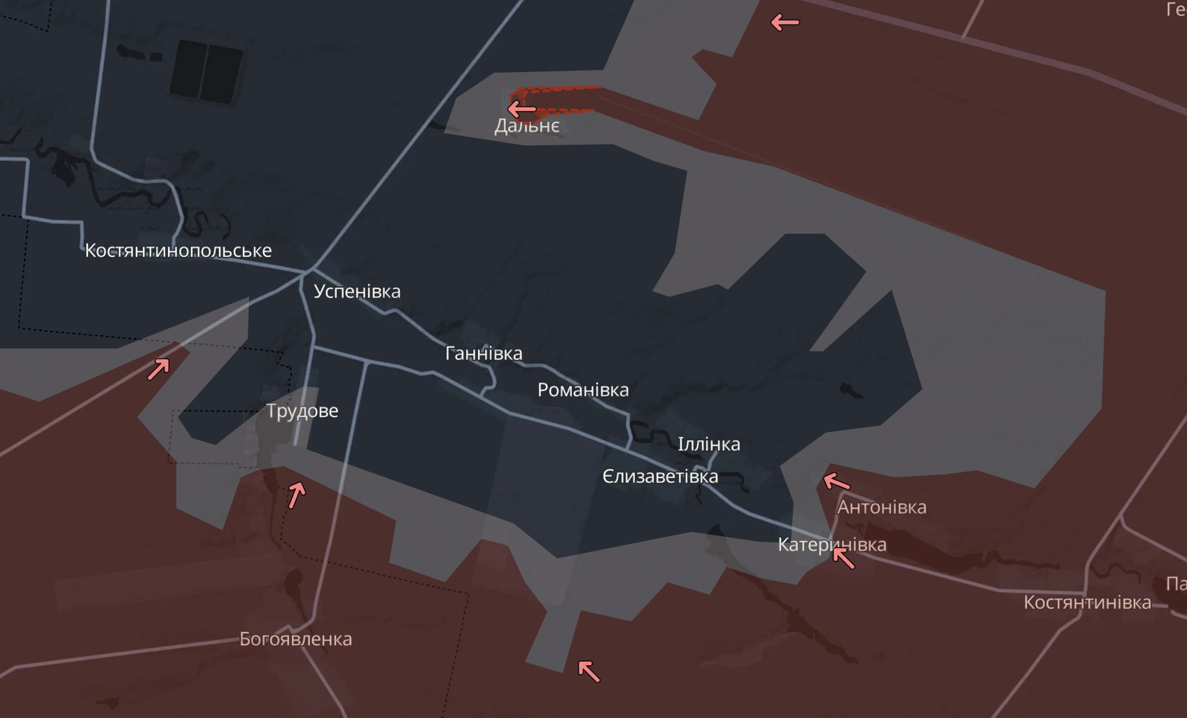 Россияне продвинулись по двум флангам этого полуокружения - со стороны Трудового и Дальнего. "Горло" между деревнями сузилось с примерно шести до четырех километров.