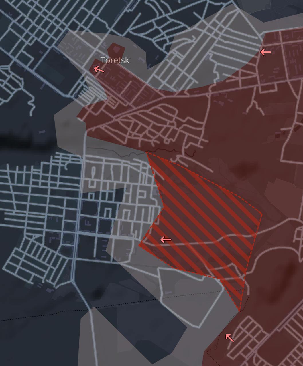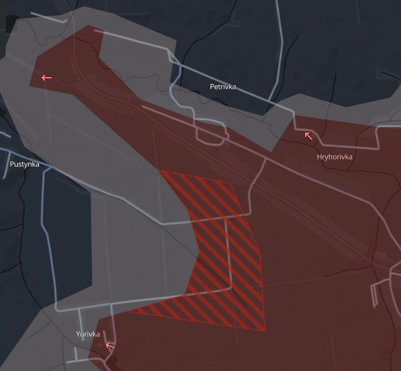 Кроме того, по данным Deep State, за минувшие сутки российские войска продвинулись в Донецкой области не только в Часове Яре, но и в соседней Калиновке, а также Торецке, Курахово, Берестках, под Юрьевкой и Раздольным (в направлении Великой Новоселки). Зафиксировано продвижение и у Погребков Курской области РФ.