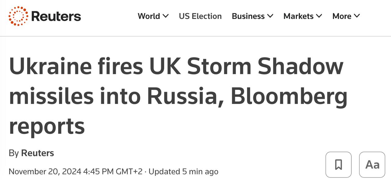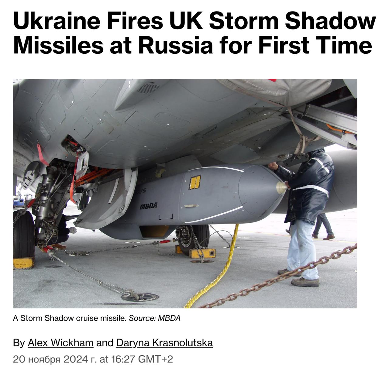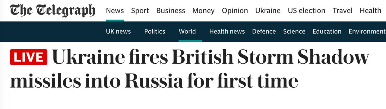 Вскоре и западные СМИ также написали, что Украина сегодня впервые ударила по территории РФ ракетами Storm Shadow.
