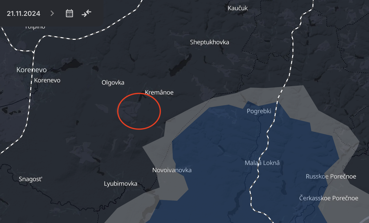 В Курской области российские войска отбили большой Ольговский лес. Об этом свидетельствует карта украинского военного паблика Deep State.