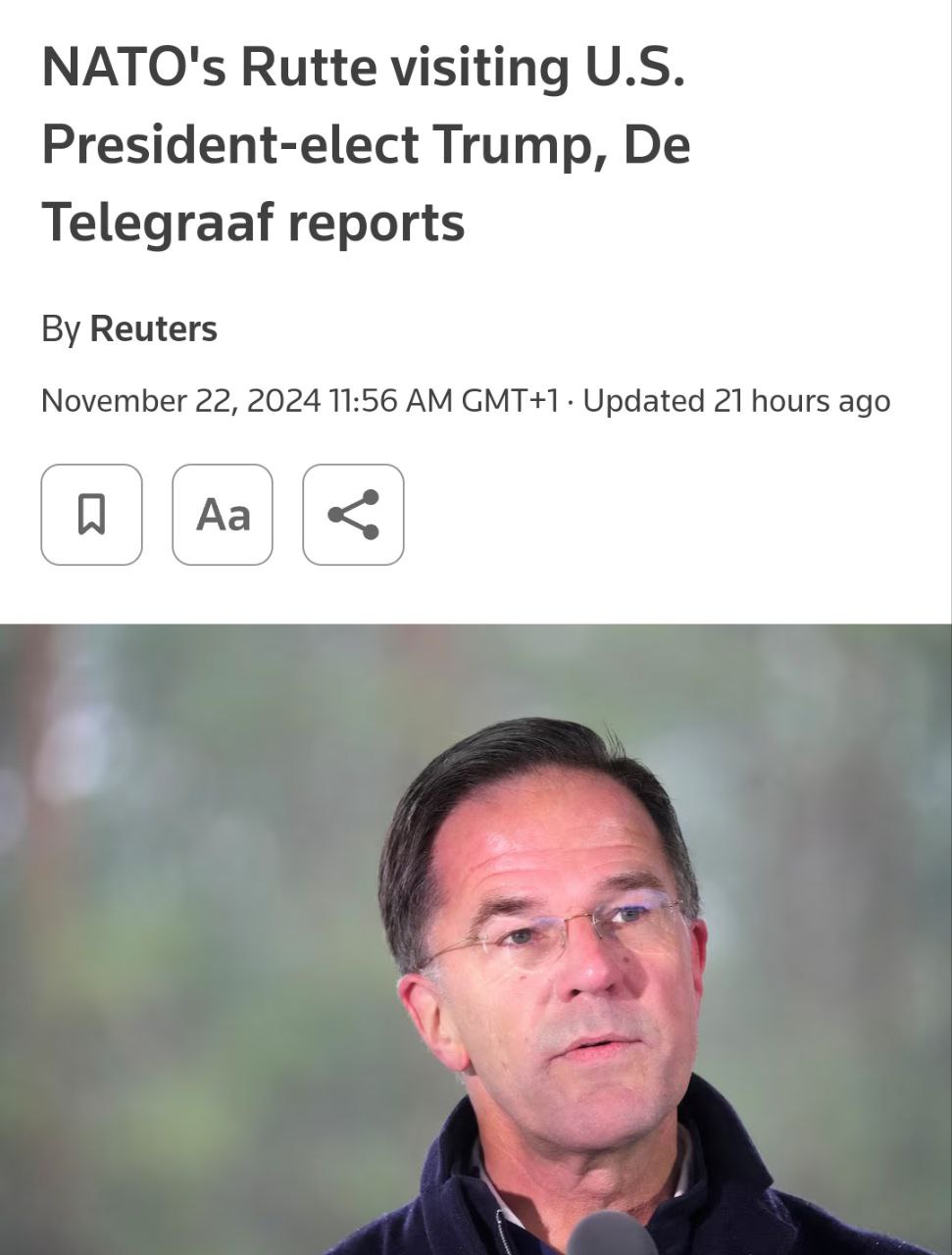 Голландская газета De Telegraaf со ссылкой на источники написала, что Рютте летел на голландском правительственном самолете.