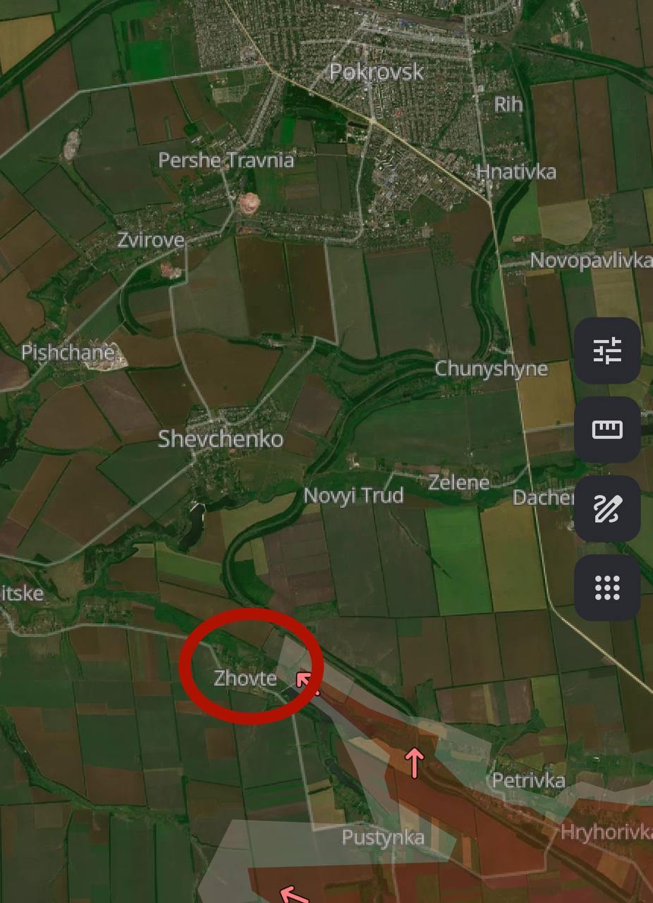 Что касается Покровска, похоже, россияне пытаются обойти его с юга. Как свидетельствует карта Deep State, армия РФ продвинулась в районе села Желтое.