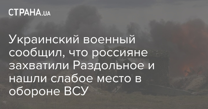 Украинский военный сообщил, что россияне захватили Раздольное и нашли слабое место в обороне ВСУ