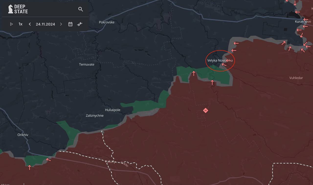 Со вчерашнего дня украинские военные пишут о крайне тяжелой ситуации, которая складывается около Великой Новоселки в Донецкой области. Россияне пошли в прорыв, зашли в сам населенный пункт и постепенно окружают его с севера, с востока и с запада.