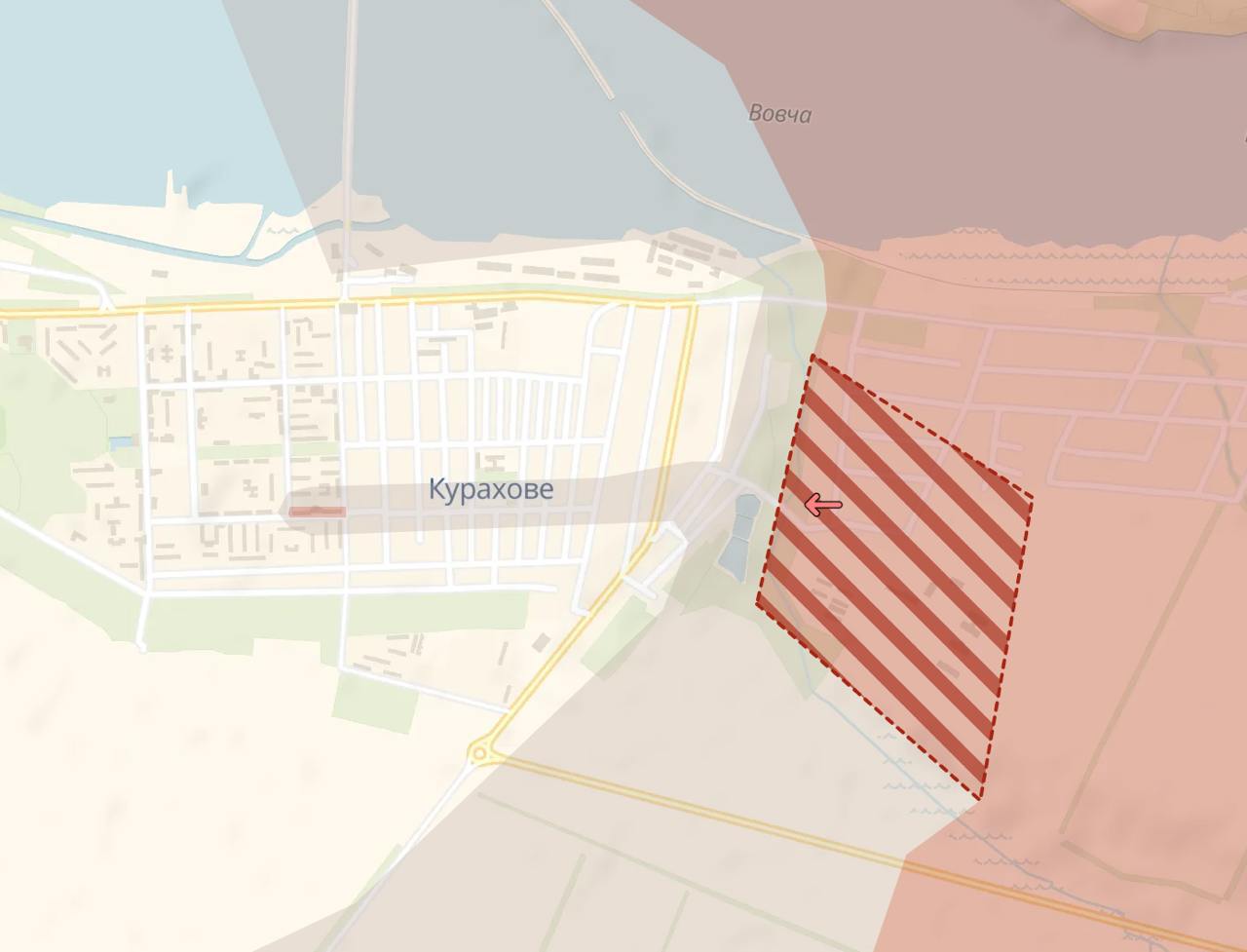 Судя по ней, россияне штурмовали одну улицу, но закрепиться в центре им не удалось. Однако у них есть продвижение южнее города - возле Дальнего и Максимовки.