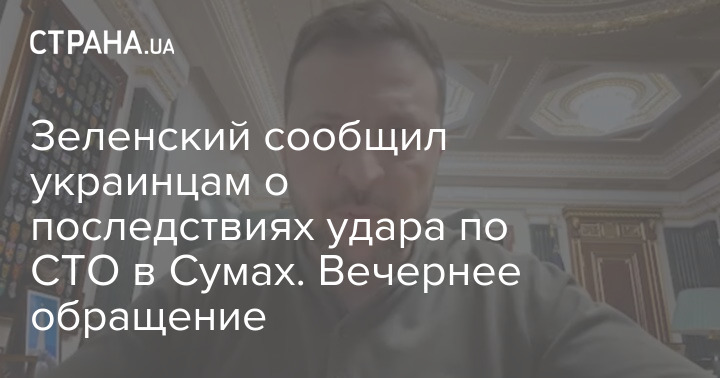 Зеленский сообщил украинцам о последствиях удара по СТО в Сумах. Вечернее обращение