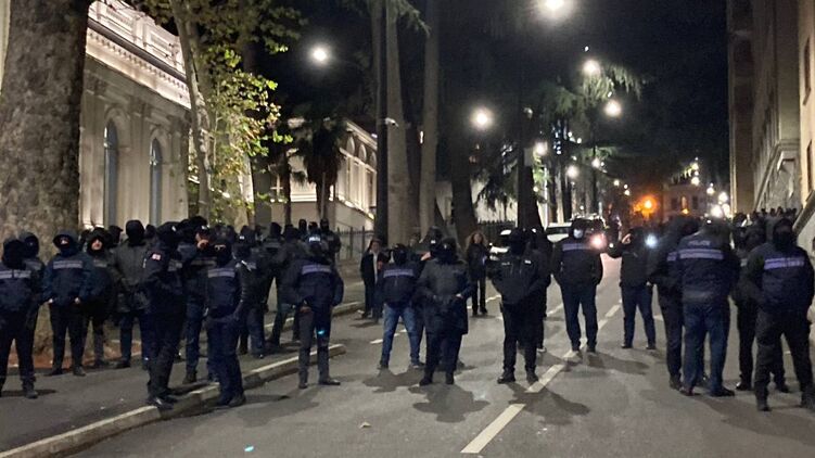 Вскоре после начала митинга у здания парламента Грузии произошло столкновение протестующих с полицией.