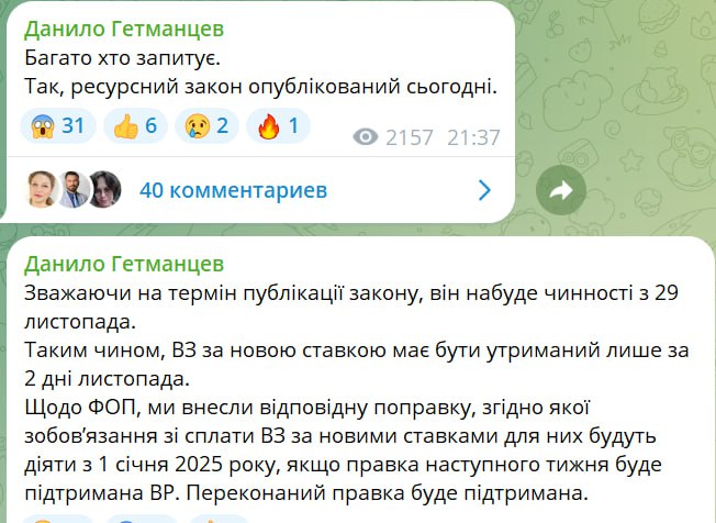 Касаельно физлиц-предпринимателей Гетманцев заявил, что на следующей неделе в Раде на голосование будет выставлена поправка, чтобы для них предусмотренные этим налогом изменения вступили в силу с 1 января. Но для этого нужно, чтобы за эту поправку парламент проголосовал, а президент ее подписал.