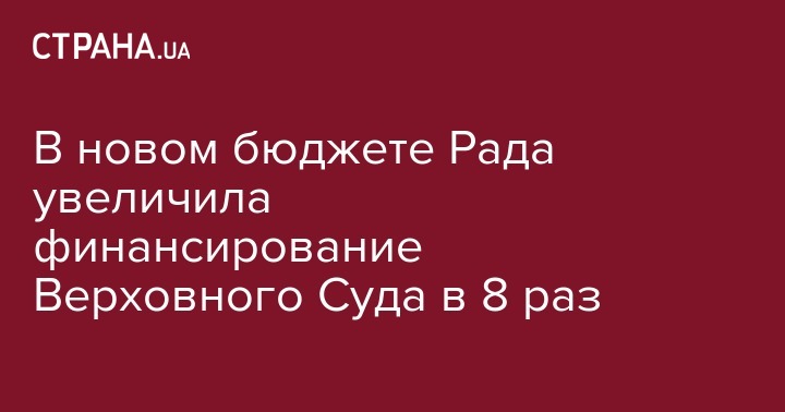 Государственный бюджет на 2017 год предусматривает увеличение финансирования Верховного Суда по сравнению с 2016 годом на 850% до 1 млрд грн. Об этом говорится в тексте закона о госбюджете на 2017 год, обнародованном на сайте Верховной Рады.