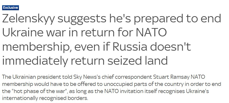 Зеленский готов прекратить войну по линии фронта в обмен на НАТО. Что это значит?