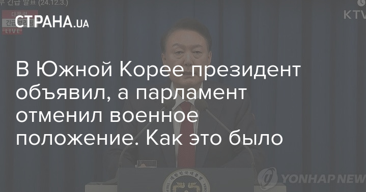Несколько часов назад депутаты парламента Южной Кореи проголосовали за отмену военного положения, введенного президентом. И его глава заявил, что военное положение отменено.